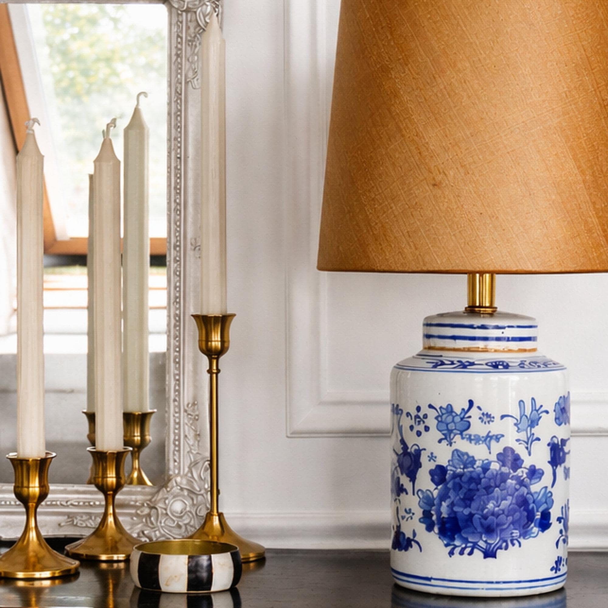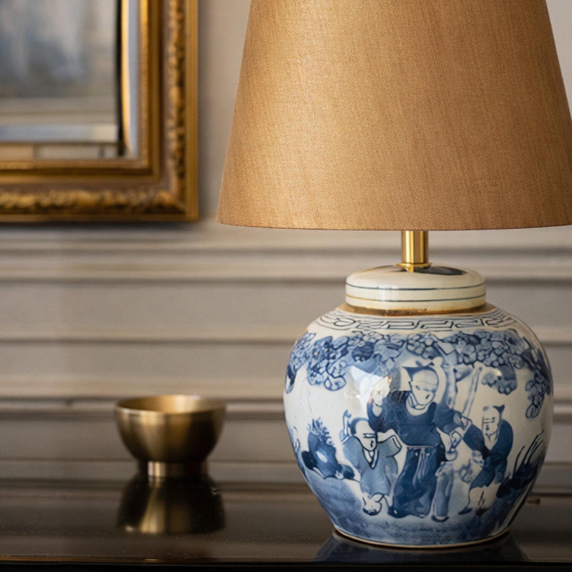 De combinatie van zijde en een gouden binnenzijde geeft deze lampenkap een rustige luxe uitstraling. Hierdoor laat de kap zich goed combineren met materialen zoals hout, keramiek en messing. Tegelijk vormt zij een verbindend element in een interieur waarin verschillende stijlen samenkomen.