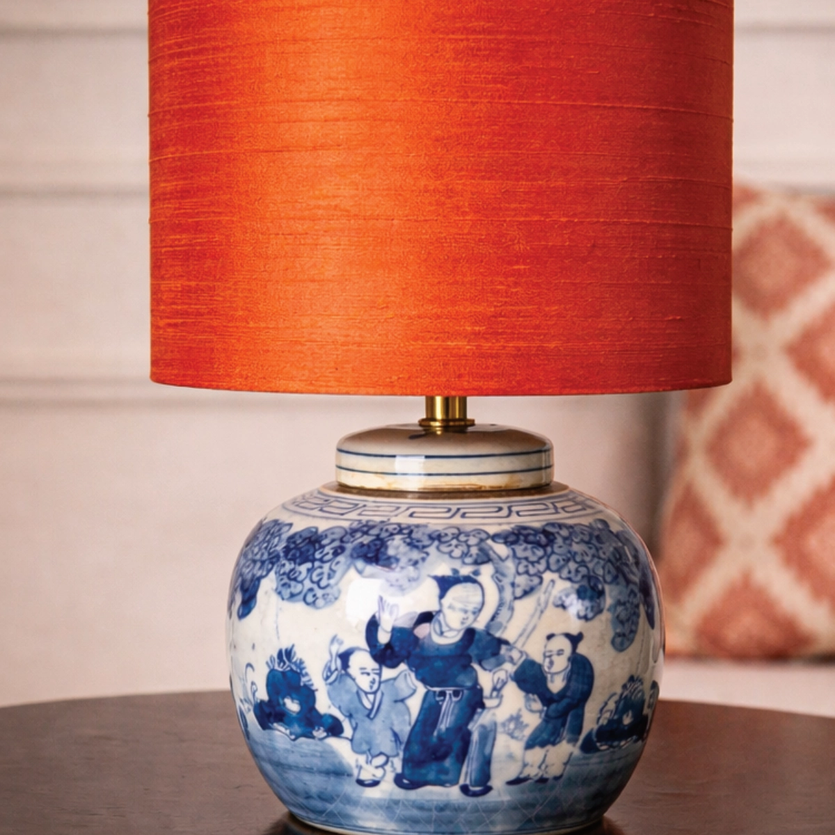 Deze lampenkap in oranje aarde is ontworpen voor interieurs waarin natuurlijke kleuren en verfijnde materialen samenkomen. De tint beweegt tussen warm oranje en terra, waardoor de lampenkap diepte en warmte toevoegt zonder te overheersen. Het resultaat is een rustige, rijke kleur die zowel in moderne als klassieke interieurs tot zijn recht komt.