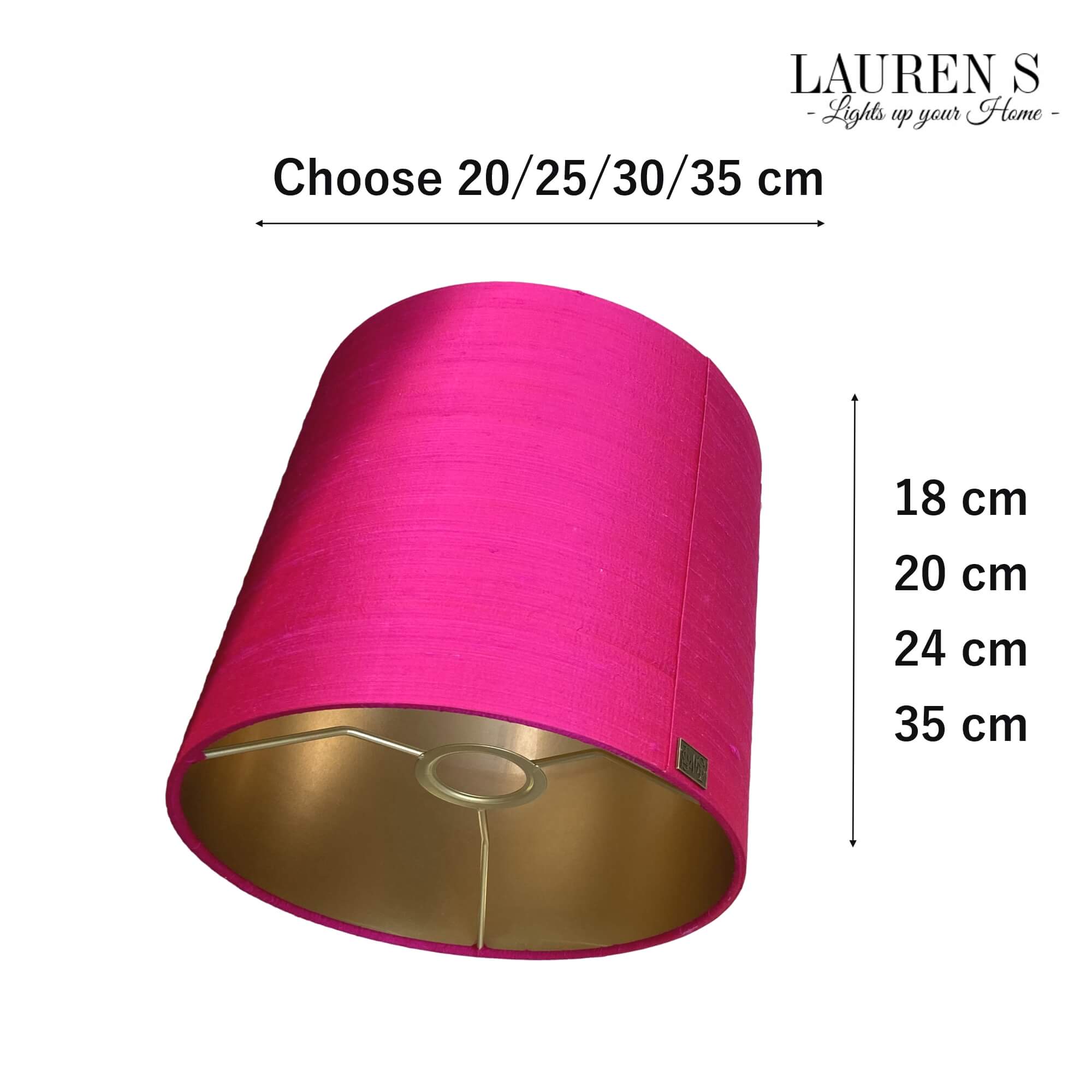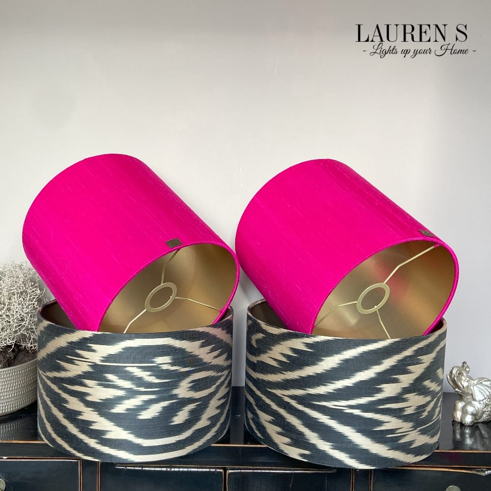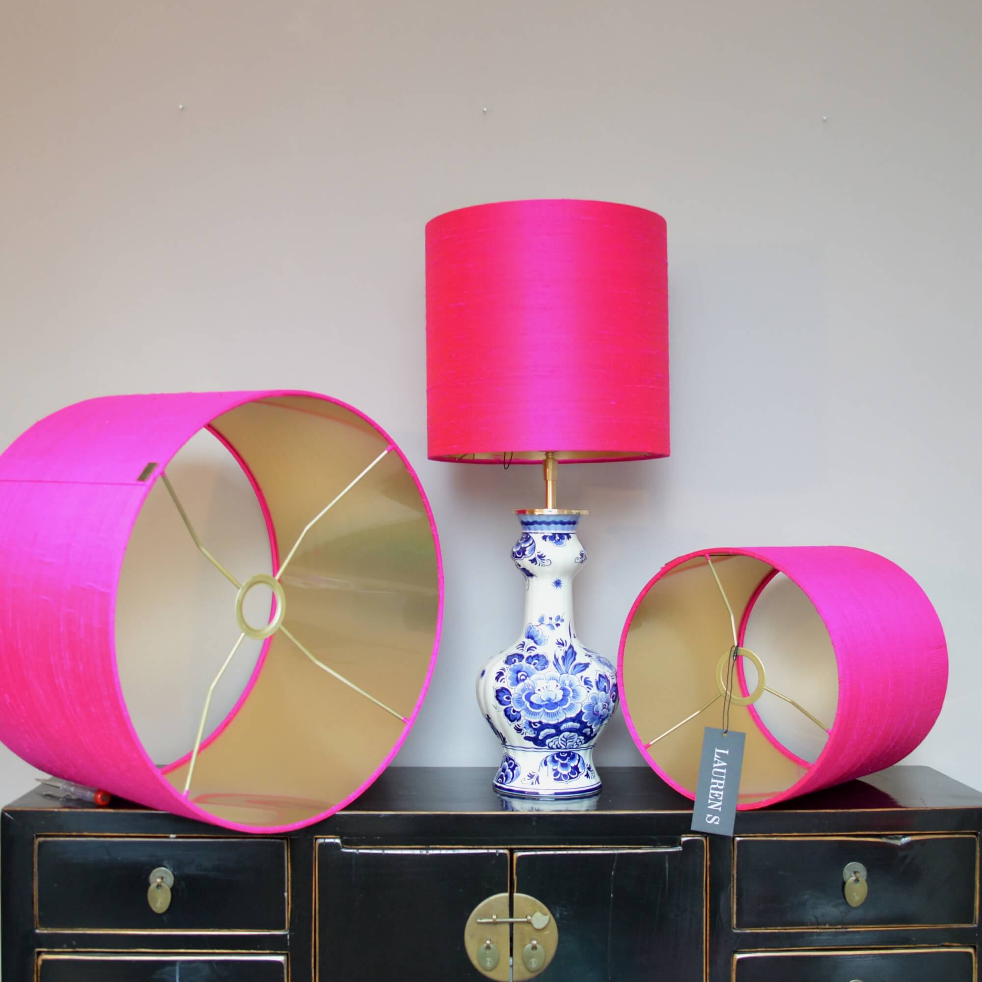 Laat jouw interieur stralen met een op maat gemaakte lampenkap roze zijde van Lauren S en geef jouw woonruimte een tijdloze, luxe uitstraling.