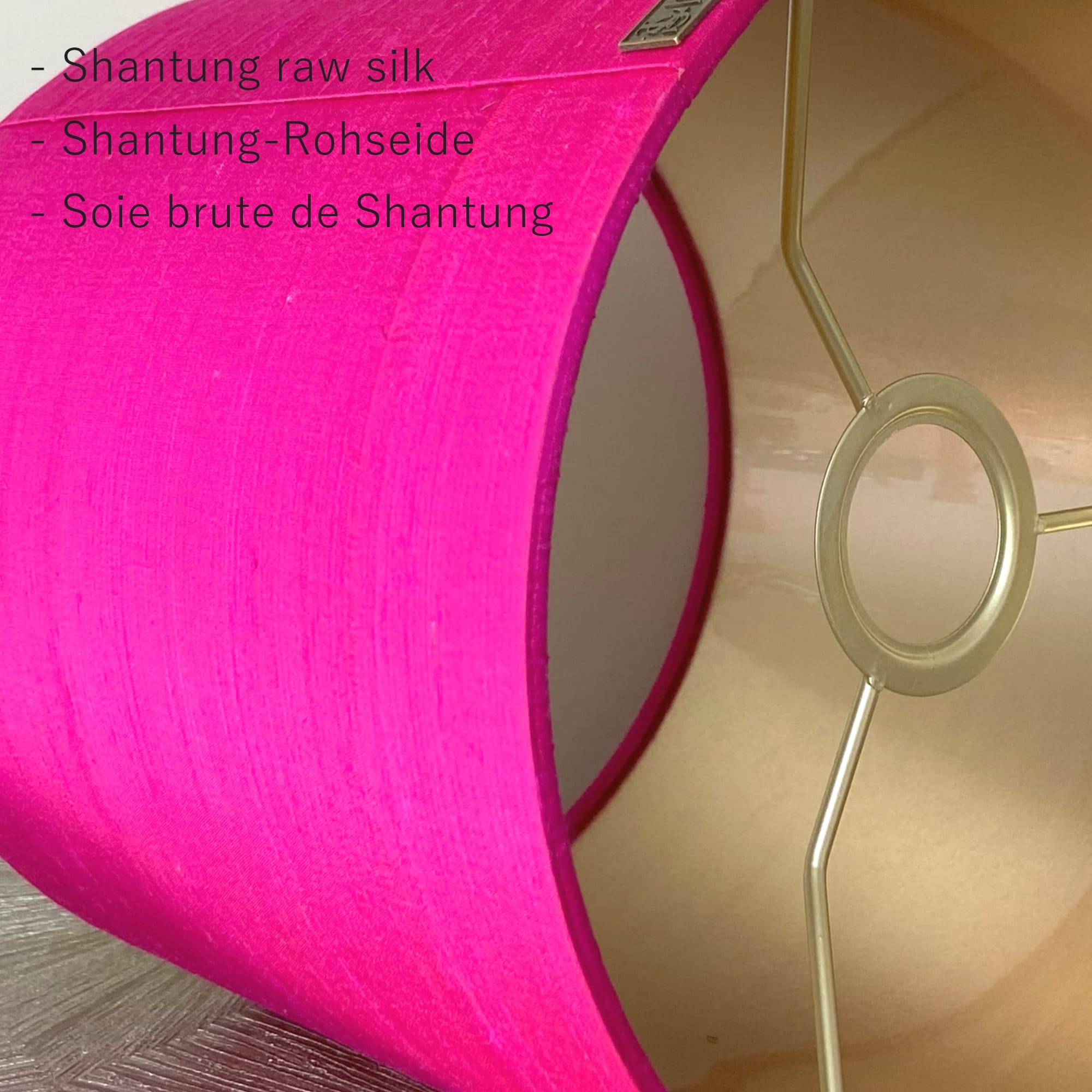 Elke lampenkap roze zijde is met de hand vervaardigd in mijn lampenatelier van Lauren S. Ik combineer traditionele technieken met een eigentijdse visie. De keuze voor wilde zijde uit India zorgt niet alleen voor een rijke uitstraling, maar ook voor een unieke textuur die elke lampenkap zijn eigen karakter geeft. De zorgvuldig afgewerkte naden en de stevige metalen frame garanderen een lange levensduur en een verfijnde afwerking.