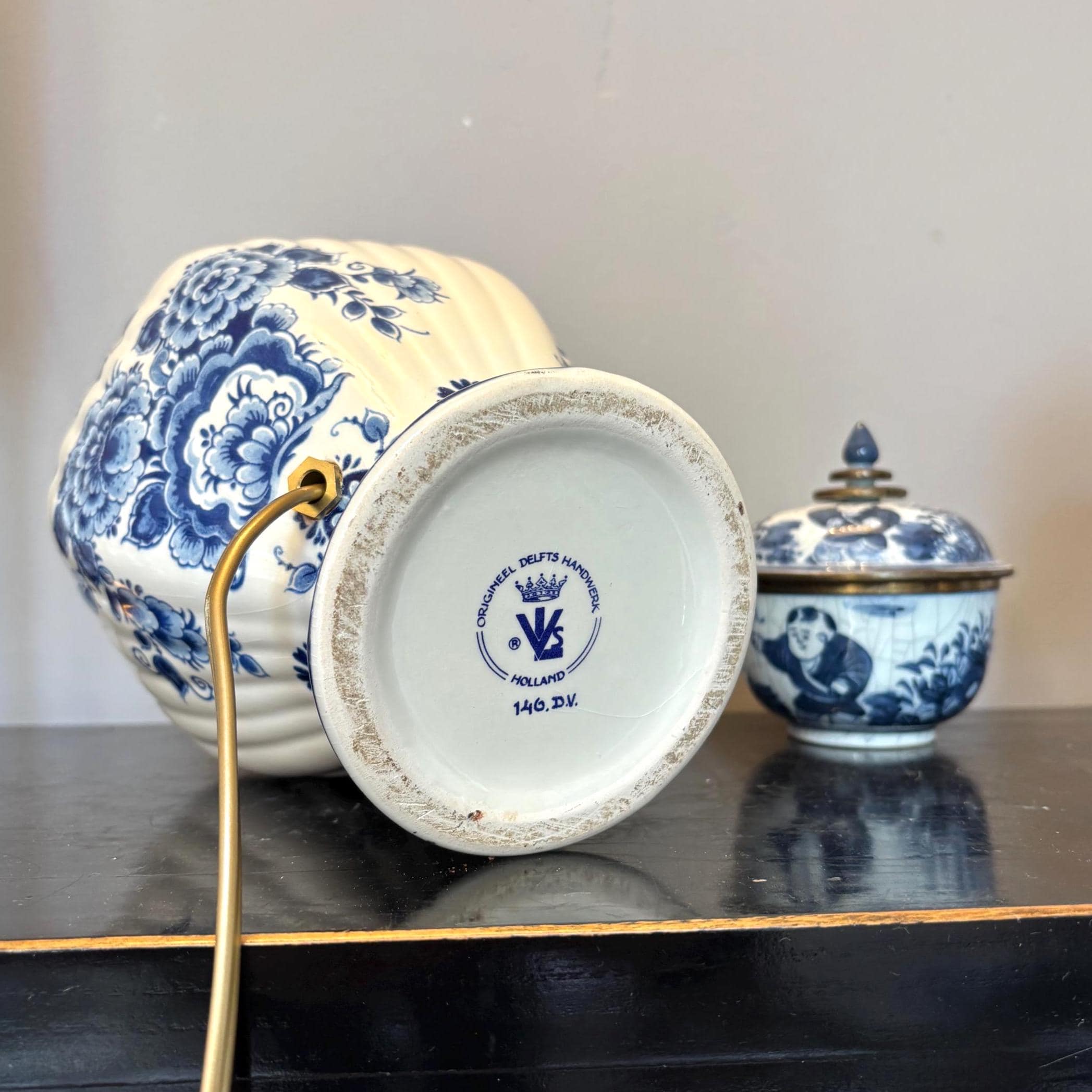 Deze klassieke lamp is met zorg samengesteld uit een originele Delfts Blauw vaas of pot, ambachtelijk omgevormd tot een unieke lampenvoet keramiek. Het kenmerkende blauw-witte decor is niet alleen een esthetische keuze, maar weerspiegelt ook een diepgewortelde traditie in het Nederlandse erfgoed. Door de combinatie van traditioneel porselein met moderne messing accenten en een goudkleurig snoer ontstaat een tijdloos en luxe object.