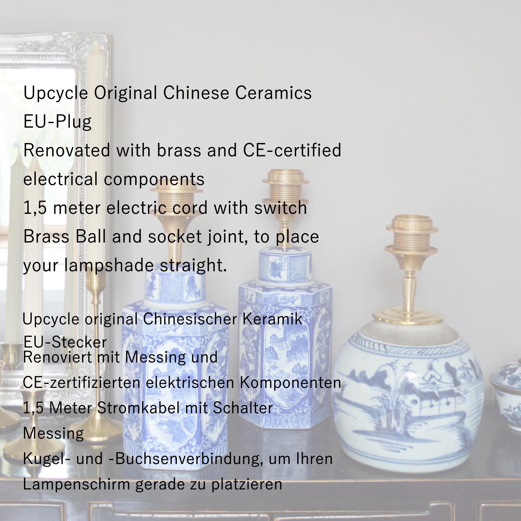 Chinees aardewerk kent een rijke geschiedenis die teruggaat tot de keizerlijke dynastieën. Al sinds de 17e eeuw wordt het gewaardeerd in Europa en is het geliefd onder verzamelaars en liefhebbers van hoogwaardige decoratie. In de 20e eeuw werd Chinees porselein opnieuw veel geïmporteerd voor gebruik in de interieurwereld, vaak verwerkt tot decoratieve lampvoeten en luxe woonaccessoires. Deze lamp is daar een bijzonder voorbeeld van.